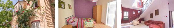 Bilder oben: Castel Arabel alter Teil des Gebäudes, Wohnbeispiel Studio Antibes