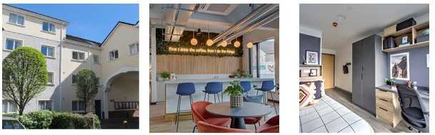 Dublin Residenz: Was lange Jahre nicht möglich war, da Dublin klein ist und der Wohnraum sehr knapp und teuer – haben wir endlich in diesem Jahr neue Unterkünfte in der Dublin city! (Bilder: Wohnbeispiel Residenz Host Point Campus, Dublin City.